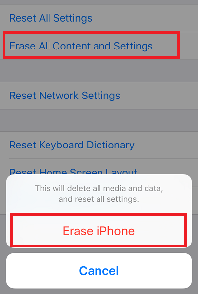 Nếu tất cả các cách làm ở trên đều không có hiệu quả, bạn có thể phải phải xóa tất cả nội dung và các thiết lập trên máy để bắt đầu lại từ đầu bằng cách bấm vào Erase All Content and Settings trong mục Reset của Settings. Việc này sẽ làm mất tất cả dữ liệu của bạn vì vậy cần sao lưu chúng trước khi khôi phục.