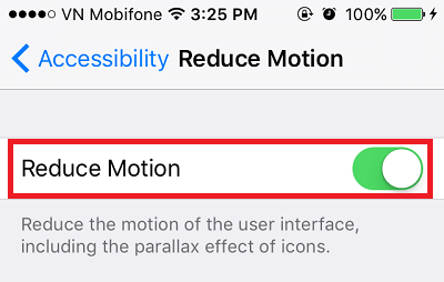 Mở Reduce Motion