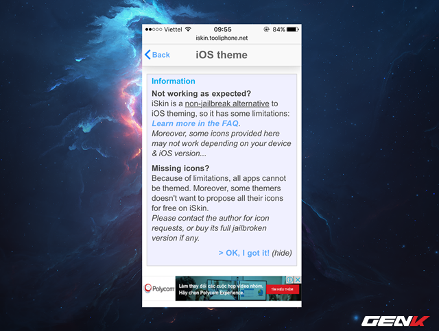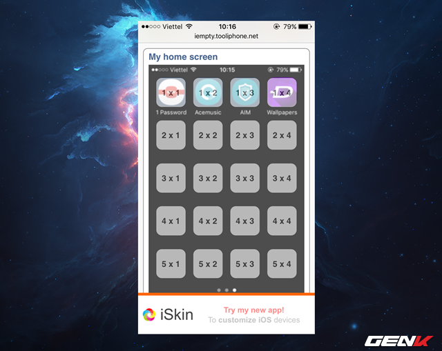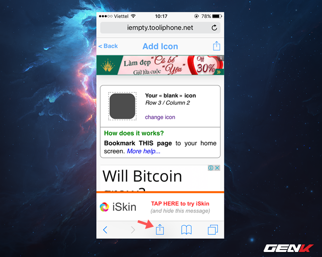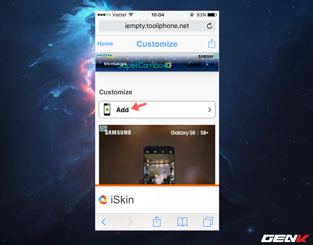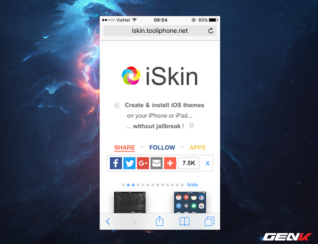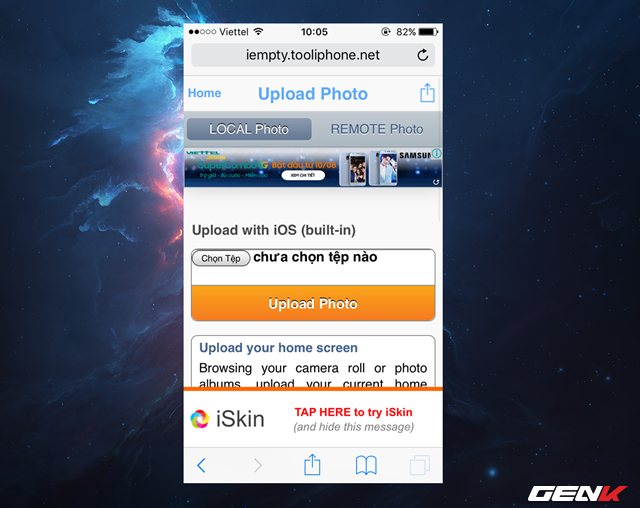 Dùng ứng dụng duyệt web của iPhone và truy cập vào địa chỉ “iskin.tooliphone.net”.