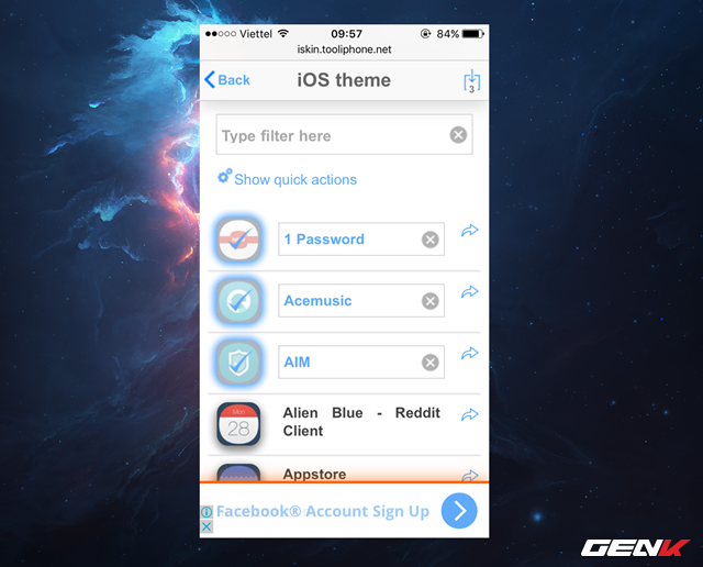 Có 2 cách để bạn có thể thay đổi icon cho iPhone, một là sử dụng công cụ nền web Micon mà chúng ta từng tham khảo tạibài viết này và cách còn lại là sử dụng iSkin như sau: