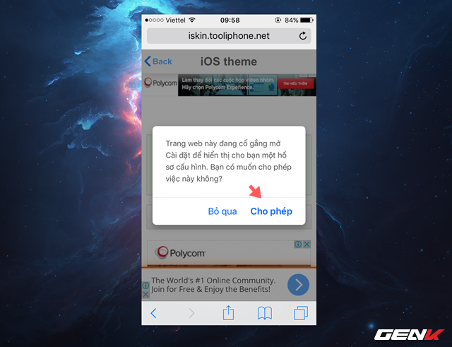 Nhấn “Cho phép” ở cửa sổ hiện ra.
