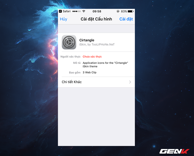 Khi nào cần khôi phục lại mặc định, bạn chỉ việc truy cập vào Cài đặt > Cài đặt chung > Cấu hình và tìm đến đúng tên bộ icon đang dùng và xóa chúng đi.