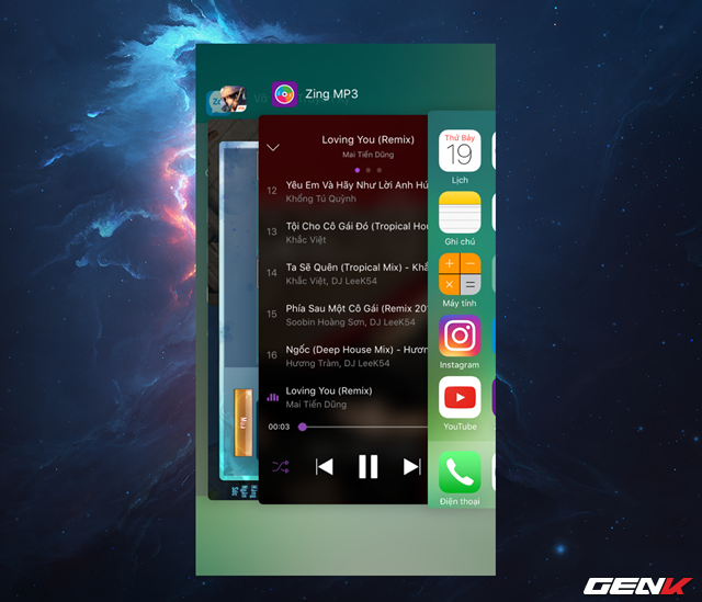 Nhấn 2 lần phím Home để mở giao diện đa nhiệm.