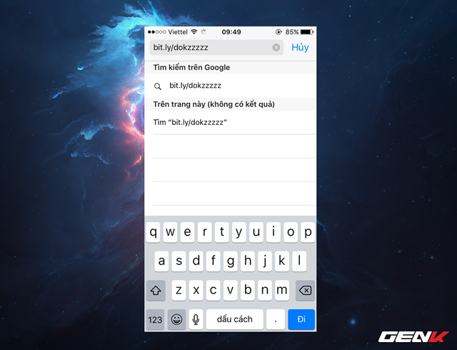Sử dụng trình duyệt web trên iPhone và truy cập vào địa chỉ “bit.ly/dokzzzzz”, sau đó nhấp vào biểu tượng “Share” ở thanh công cụ trình duyệt.
