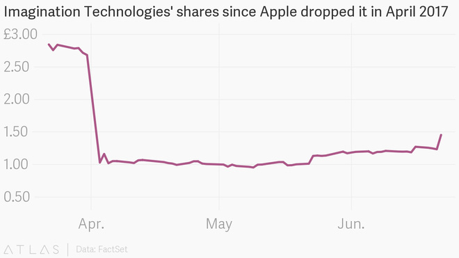 Vào ngày 3 tháng 4, công ty Imagination Technologies là một công ty chuyên cung cấp chip đồ họa cho Apple. Chỉ sau chưa đầy ba tháng, khi nhà sản xuất Iphone cho biết họ sẽ không còn dùng những thiết kế ngoài, mà sẽ tự sản xuất chip đồ họa cho riêng mình, công ty Anh quốc này đã bị đem rao bán.