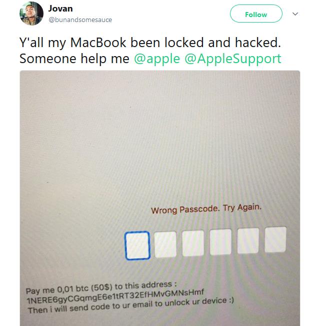 Một số người bị hacker tấn công đã chia sẻ trên mạng xã hội về tình trạng bị tống tiền của mình. Nếu không đưa đủ số tiền giao ước, có nguy cơ họ sẽ vĩnh viễn mất hẳn chiếc Macbook của mình.