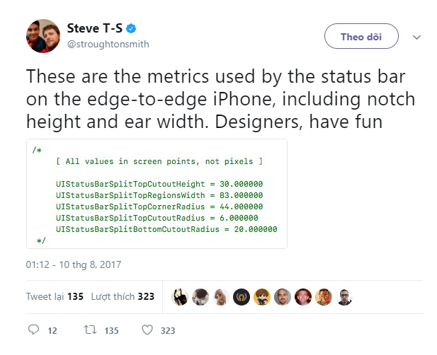 Và tweet này cho thấy các phép đo của khu vực thanh trạng thái hàng đầu, như tiết lộ trong sự rò rỉ phần mềm HomePod: