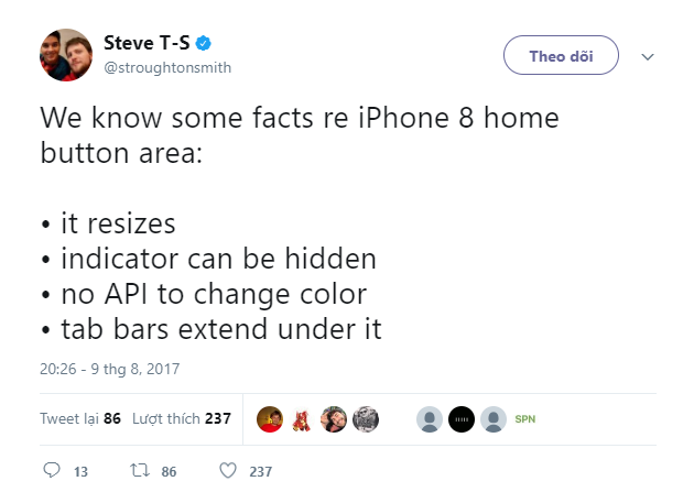 Nhà phát triển Steve Troughton-Smith, "được hỗ trợ bởi bằng chứng API", đã đăng một bản tóm tắt về vùng nút Trang chủ sẽ và sẽ không thể làm được - và có vẻ như sẽ không có khả năng thay đổi màu sắc của các nhà phát triển Khu vực để phù hợp với ứng dụng của họ.