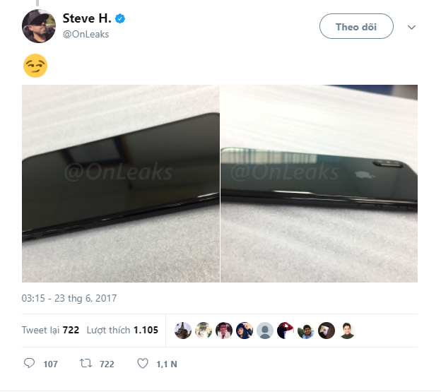 Và nếu bạn chưa chắc chắn rằng tất cả những điều này là thiết kế cuối cùng của iPhone 8, bạn không cần phải tìm kiếm gì hơn nữa là tài khoản Twitter của Oneleker nổi tiếng (và đáng tin cậy) . Cụ thể hơn, một tweet được đăng vào ngày 23 tháng 6 cho thấy iPhone 8 thế hệ kế tiếp, có thể được nhìn thấy dưới đây.