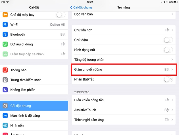 Điều này sẽ giúp giảm gánh nặng lên GPU của thiết bị. Những chiếc máy iPhone, iPad đời quá cũ thì nên bật tính năng này lên để tránh bị lag, giật trong quá trình sử dụng, bằng cách truy cập Cài đặt > Cài đặt chung > Trợ năng > Giảm chuyển động và gạt công tắc ảo.