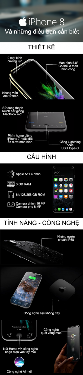 Năm 2017 sẽ là một năm quan trọng với Apple khi họ kỷ niệm 10 năm ra mắt chiếc iPhone đầu tiên. Và để kỷ niệm cho dấu mốc này, Apple có thể sẽ ra mắt chiếc iPhone mới với tên gọi iPhone 8. Bài viết này sẽ tổng hợp toàn bộ thông tin iPhone 8 nhằm giúp bạn hiểu rõ hơn về “siêu phẩm” smartphone của năm 2017 này.