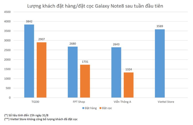 Tiêu biểu ở thị trường Việt Nam, thống kê cho thấy chỉ trong khoảng một tuần kể từ khi ra mắt, Galaxy Note8 đã có gần 13.000 đơn đặt hàng, trong đó có ít nhất 6000 đơn đã đặt cọc, và tính đến thời điểm hiện tại là hơn 40,000 đơn đặt hàng, một kỷ lục cao nhất trong lịch sử. Điều này như khẳng định rằng nếu thị trường đang thiếu một mẫu phabet cao cấp đúng nghĩa thì Galaxy Note8 chính là sự bổ sung tuyệt vời nhất mà Samsung tạo ra cho phân khúc này.